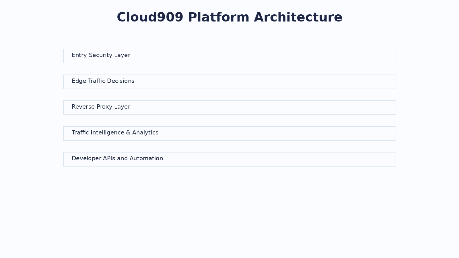 Cloud909 is designed to simplify the cloud edge stack by combining entry security, edge traffic decisions, and reverse proxy architecture into one platform.